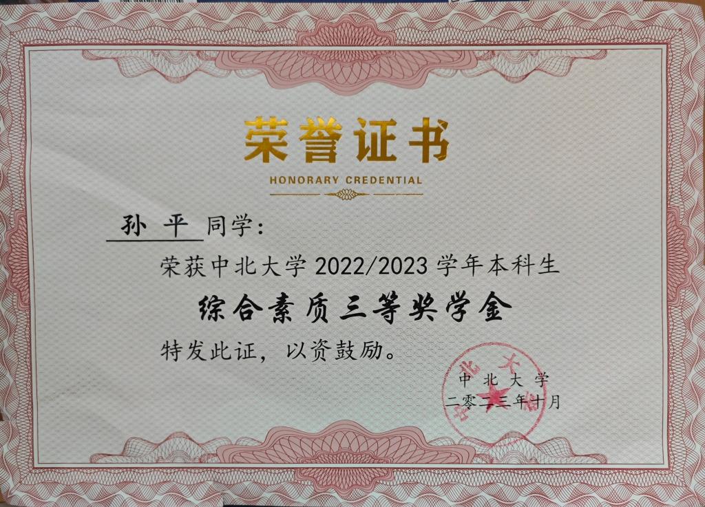 2022-2023年度 综合素质奖学金三等奖