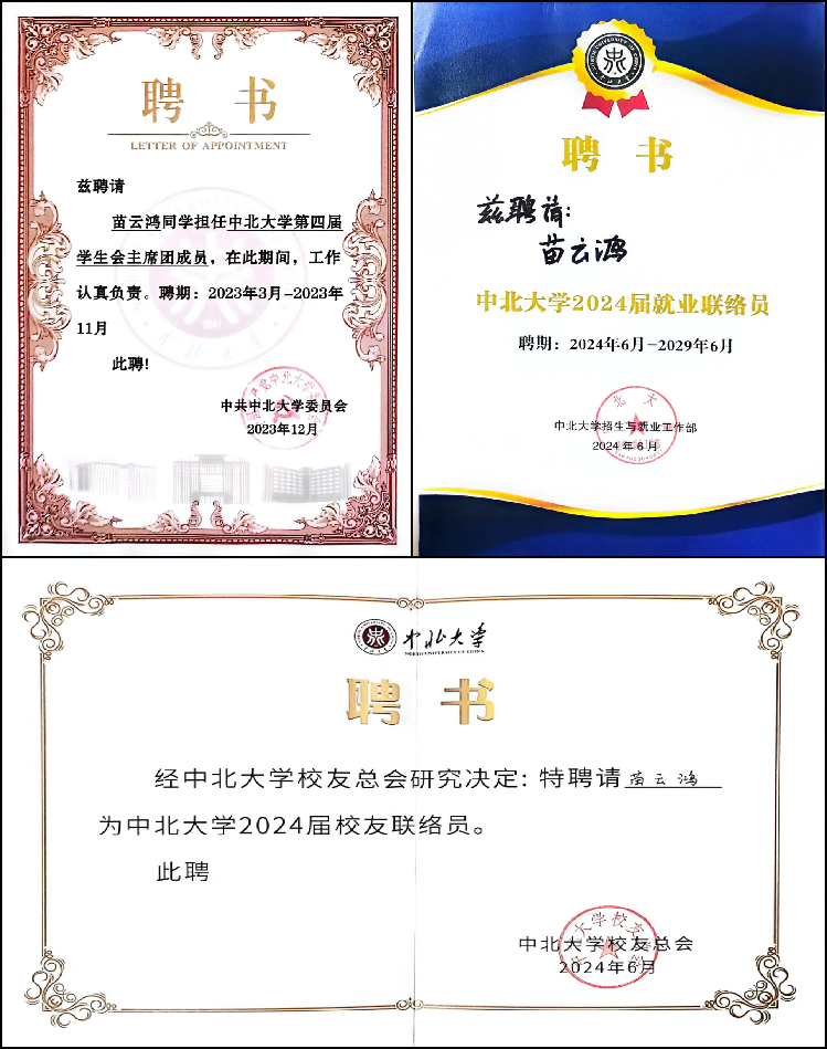 学生会”学生负责人。本科期间学分绩点连续四年位于专业前30%、综测成绩连续四年位于专业前10%,连续四年获综合素质奖学金。曾获校级优秀学生干部、校级优秀团员标兵、校级优秀团员等校级奖项以及第八届“互联网+”省级银奖、铜奖,第十八届“挑战杯”山西省大学生课外学术科技作品竞赛终审决赛省级三等奖、2022年美国大学生数学建模竞赛S奖等省部级、国家级奖项。现已成功上岸体育赛事直播