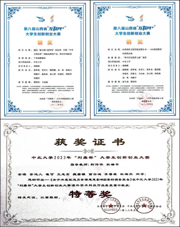 “刘鼎杯”大学生创新创业大赛校级三等奖若干