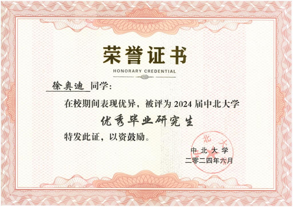 电子信息专业2021级硕士研究生,获得优秀毕业生。