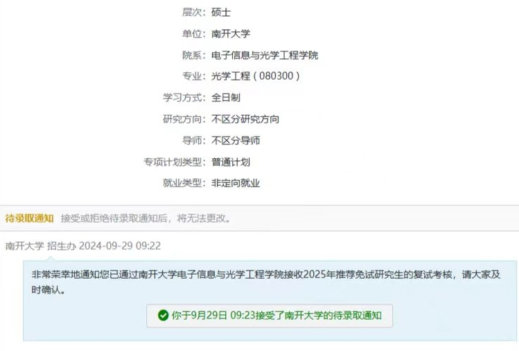 大学等多所院校的夏令营。于我而言,每一场考核都是挑战,更是成长的阶梯,这些经历不仅让我拓宽了学术视野,也让我在不断打磨中,对未来的科研道路有了更坚定的方向与更饱满的信心。