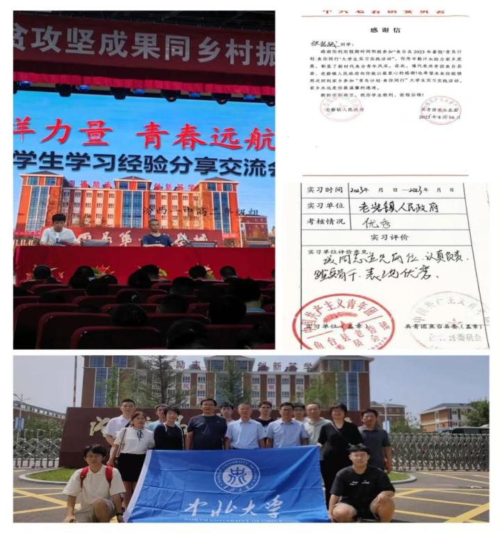 作为一名党员,“服务群众”、“奉献担当”的责任,早已化作我前行路上永不熄灭的灯塔。在校内,任职班长、物理系班主任助理等职位,积极参加党支部活动。在校外,任职山东省济宁市老砦镇政府的团支部副书记,并在2023年暑假任职体育赛事直播