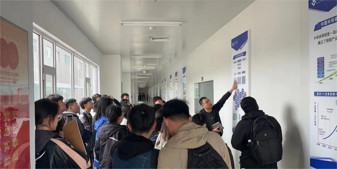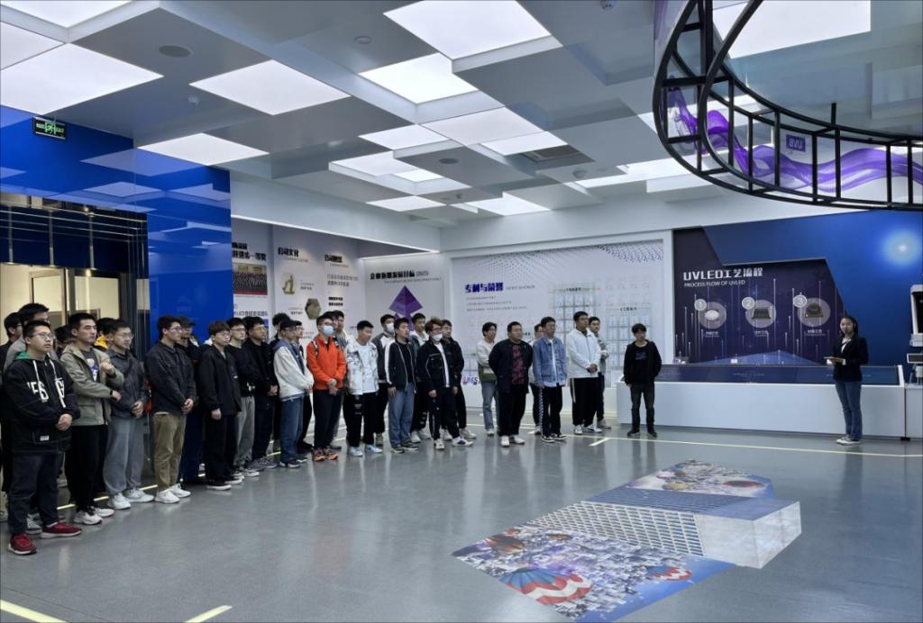 4月14日,体育赛事直播 150余名师生走进中科潞安,先后在中科潞安展厅、芯片车间、外延车间、CNAS检测实验室和MOCVD研发室进行参观,并与中科潞安研发工程师深入交流。同学们认真听取了深紫外LED外延、芯片、封装的生产工艺介绍,通过学习公司创始人李晋闽引领我国新型半导体材料与器件研究和产业化的历程,激发了同学们投身半导体和物理事业的创新热情。在创新产品展区,体育赛事直播 师生对空气消毒机、包裹消毒机、手持式杀菌仪等家用消杀产品表现出极大的兴趣,对深紫外LED公共场景应用技术有了全新的认识。