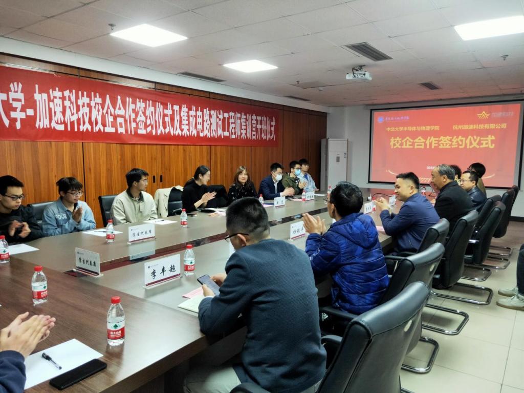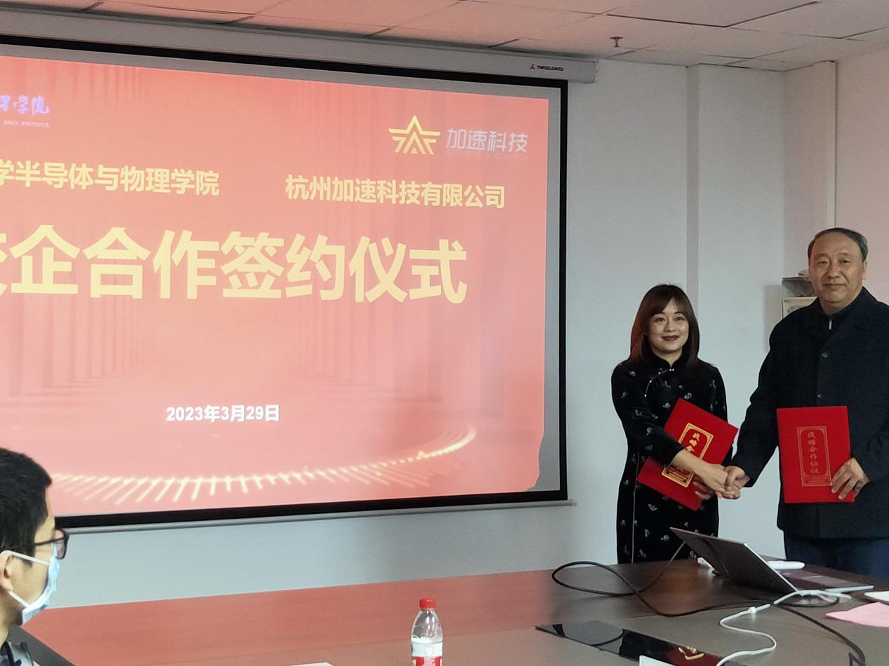 李仰军书记对加速科技黄雯总经理一行的到来表示热烈欢迎和衷心感谢,愿双方共同发力,把体育赛事直播 的人才培养工作推上一个新的台阶;唐军院长介绍了体育赛事直播 的成立背景、办学方向和人才培养模式,唐院长表示,体育赛事直播 将持续对接半导体产业需求,与企业同行,推动本科生培养改革不断深入。黄雯总经理向体育赛事直播 领导和学生代表介绍了加速科技有限公司的基本情况,她说,加速科技是一群来自农村的大学生创立的公司,怀揣着最朴实的报国梦,力争在未来5年内为半导体产业输送1万名半导体产业工程师,公司愿与体育赛事直播 建立最密切的合作,推动人才培养改革不断深入。双方签订了为期5年的战略合作协议。