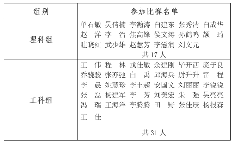 比赛分工科组、理科组两组,分组具体名单如下: