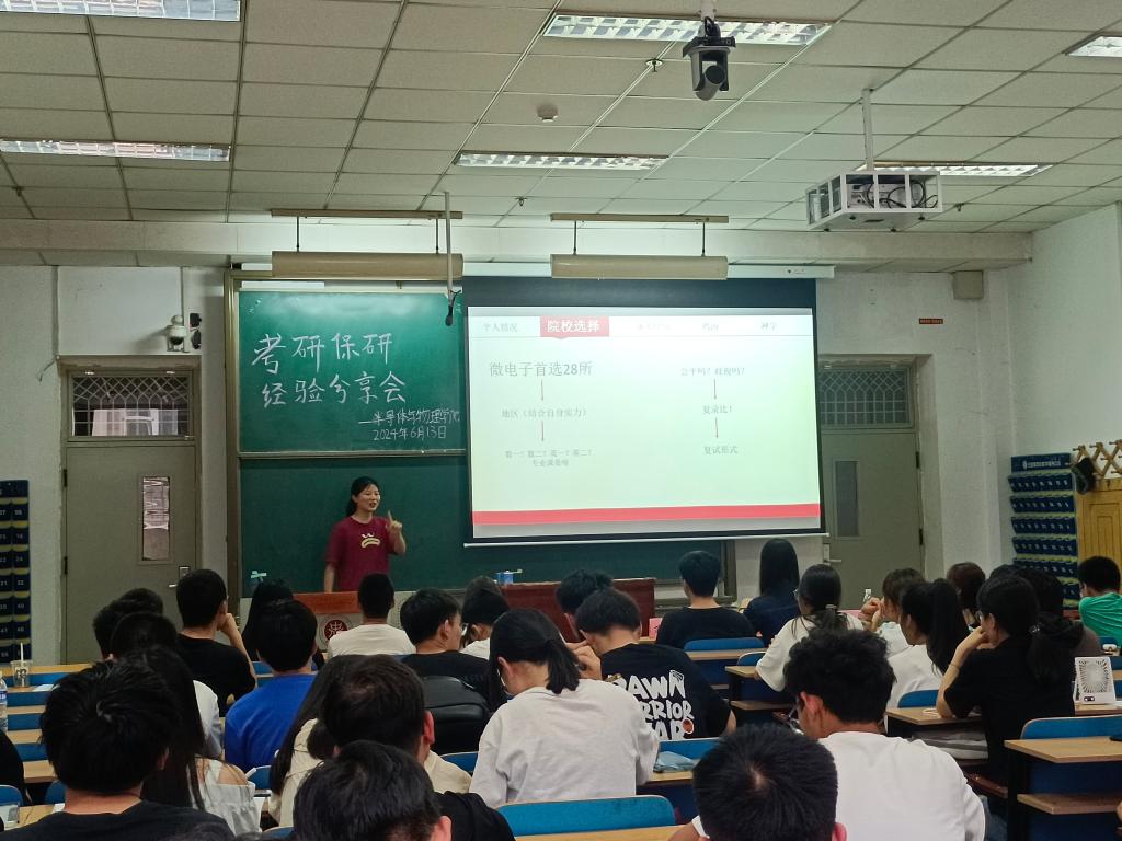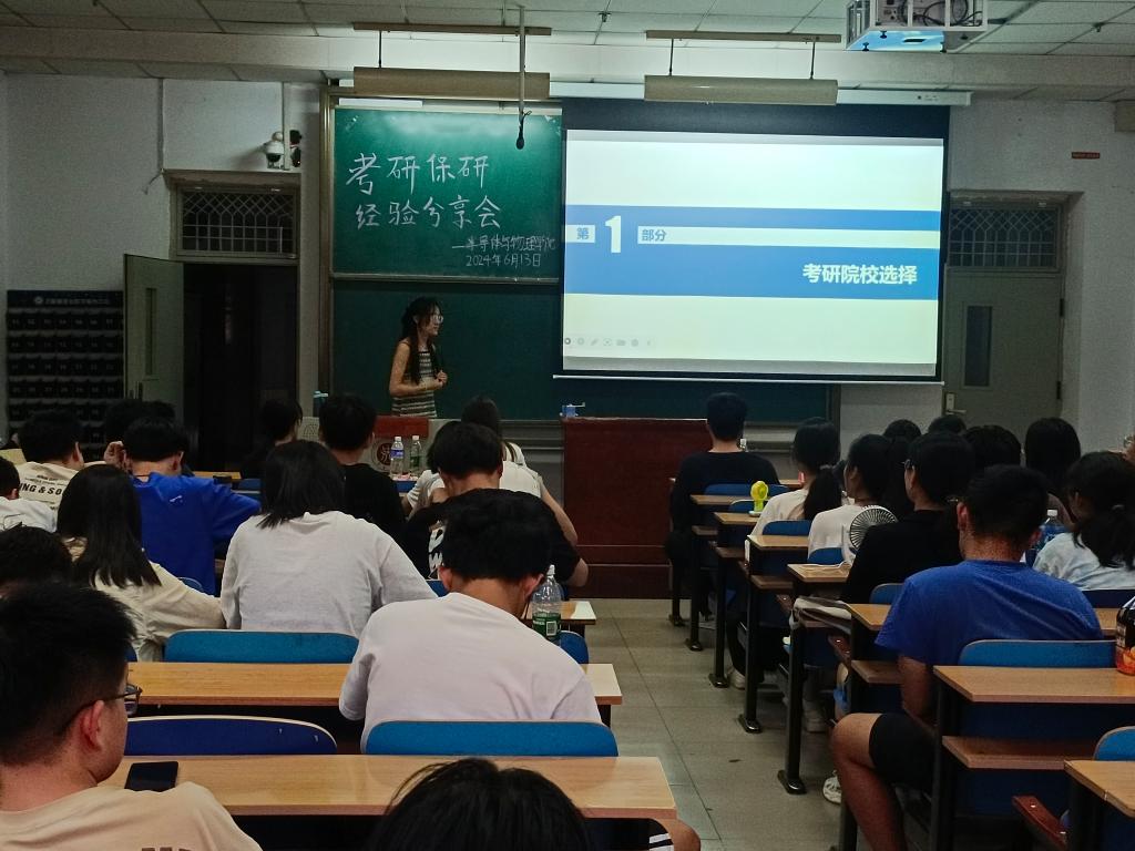 7位已经保研或考研上岸的学长学姐,他们为在场低年级同学分享了自己在考研路上的心路历程以及本科期间个人的成长经历。本次活动由孙佳怡同学主持。