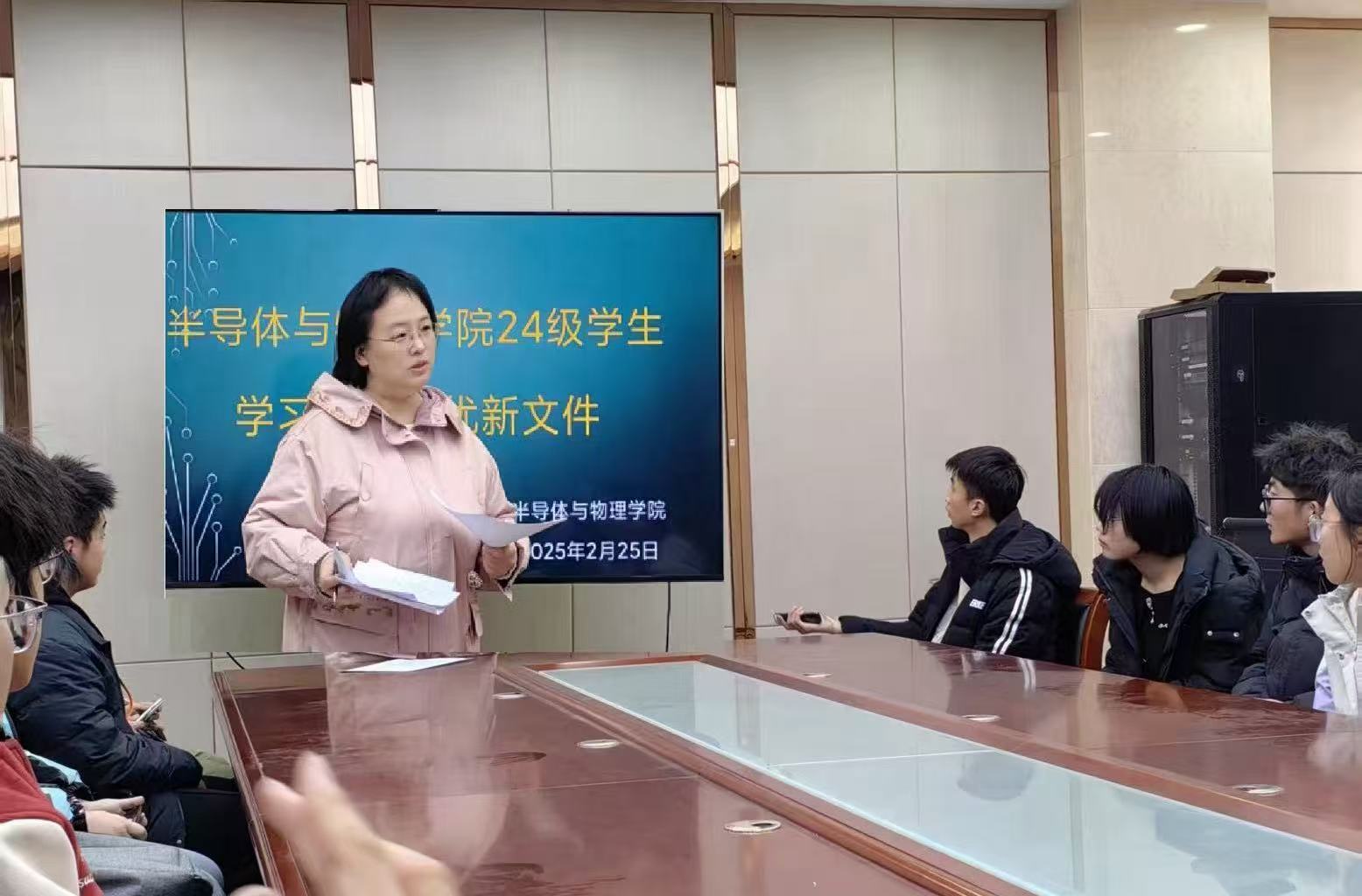 辅导员王老师主持,大一各班班长及学习部全体成员参会。